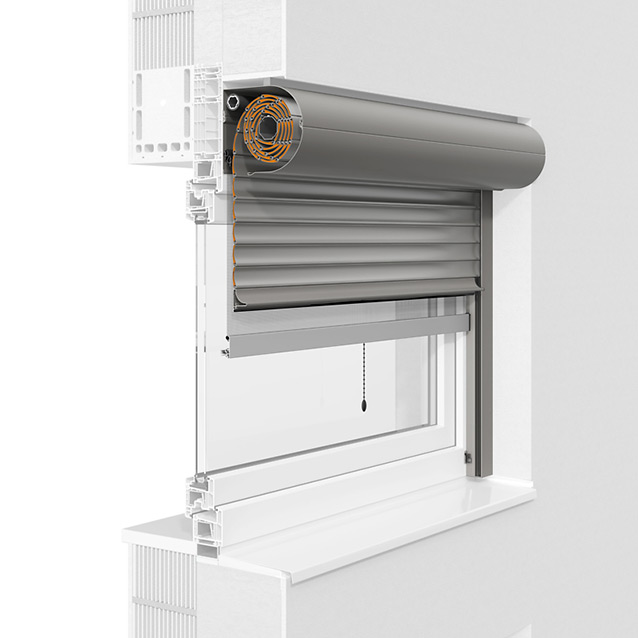 Das Rollladensystem passt sich in die Fassade ein und kann wahlweise mit eckiger oder fünfeckiger Frontblende verwendet werden.